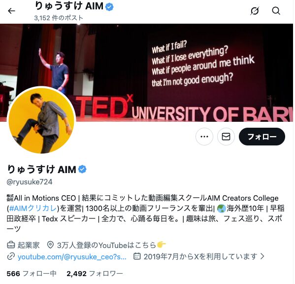 AIM Creators Collegeと運営者 りゅうすけ氏の基本情報