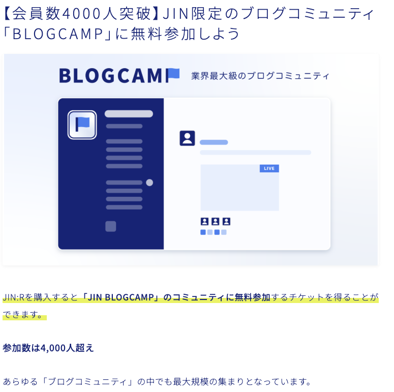 BLOG CAMPは、JIN・JIN:R購入者なら完全無料で参加できる公式コミュニティです。