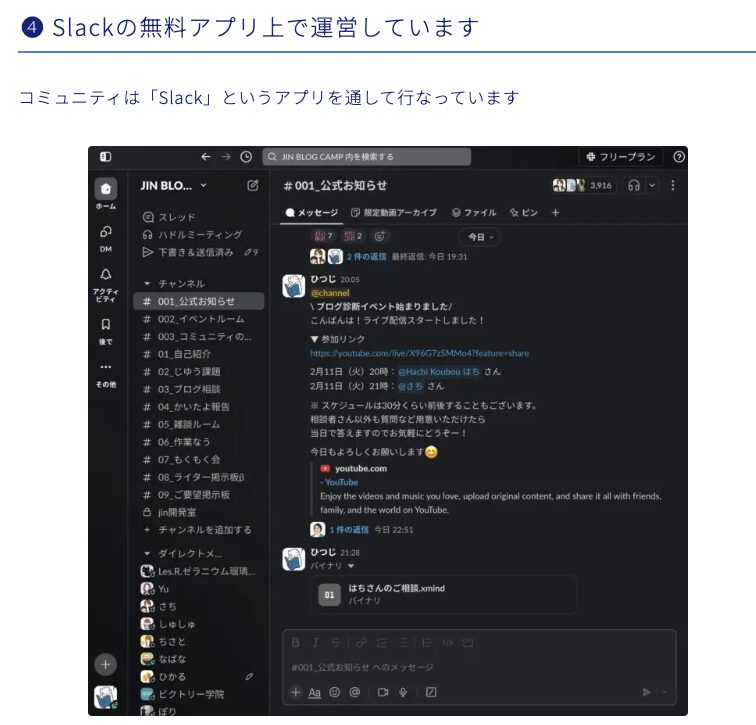 YouTubeでの「ブログ診断会」やSlack内でのイベントなど、学びと刺激を両立できるのも大きな特徴です。