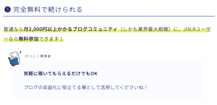 BLOG CAMPは、多くのJIN・JIN:Rユーザーが利用している人気コミュニティですが、「本当に無料なの?」といった質問もよく見られます。